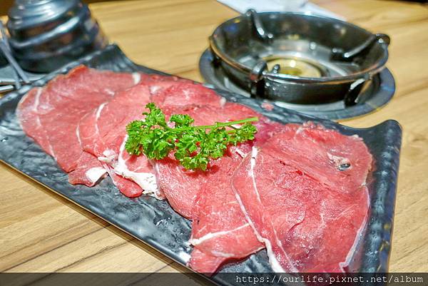 這是朋友豆皮鍋的羊肉,羊肉也是很有厚度,我把照片傳給朋友看時,大家都笑我說終於吃到一家羊肉挾的起來的火鍋店了,這羊肉我也有涮一片來吃,沒有羊羶味,肉質不錯,好吃。