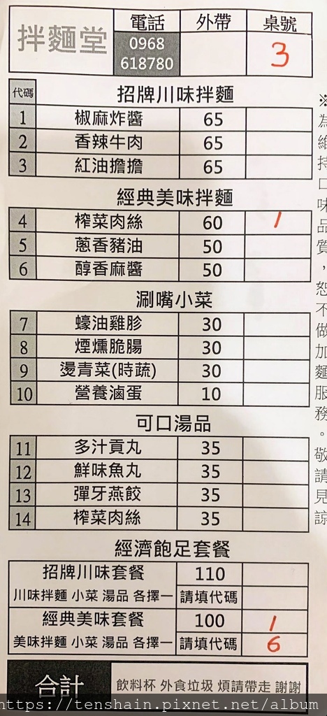 拌麵堂的品項不算多,但是每項的價位都很親民。