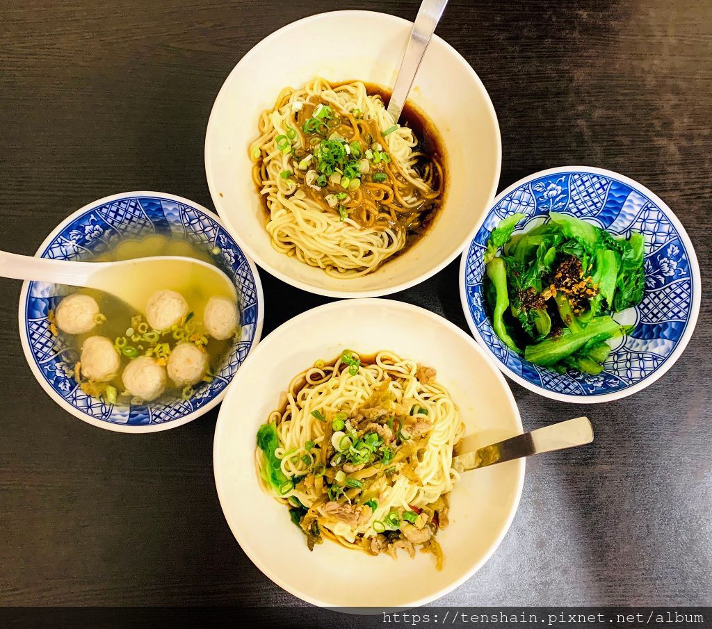 我們點了經典榨菜肉絲拌麵、經典醇香麻醬拌麵各一,再加上燙青菜一碟,鮮味魚丸一碗。