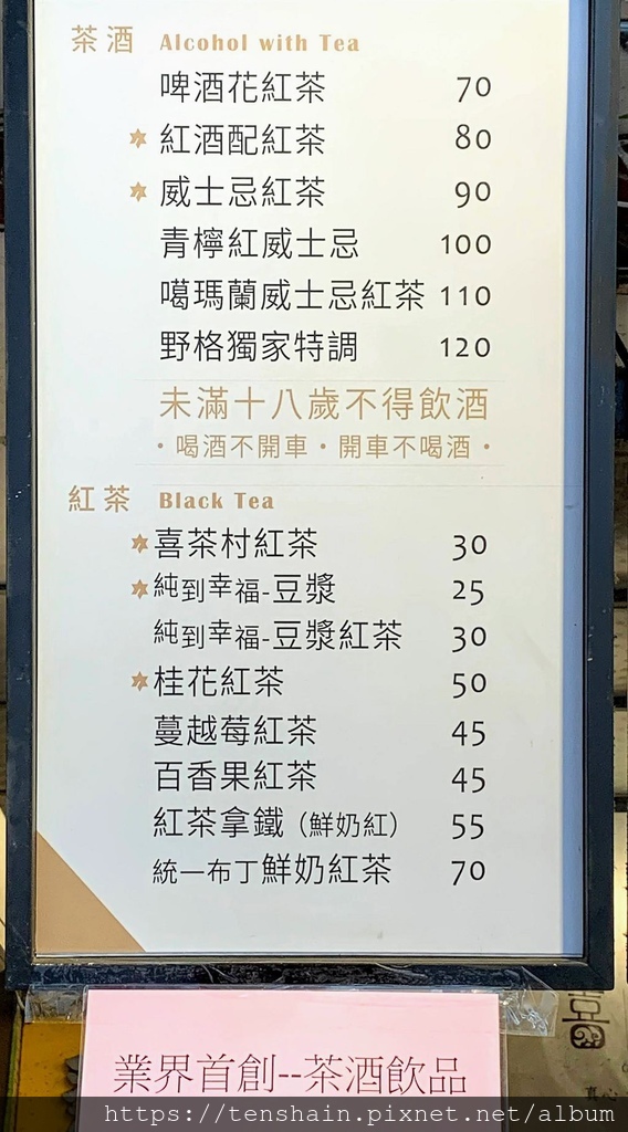 除了店名別具意義,飲品也獨樹一幟,最神奇的當然是以酒入茶。攤位上的酒可不是擺好看而已,是真的會直接加入飲料中的。