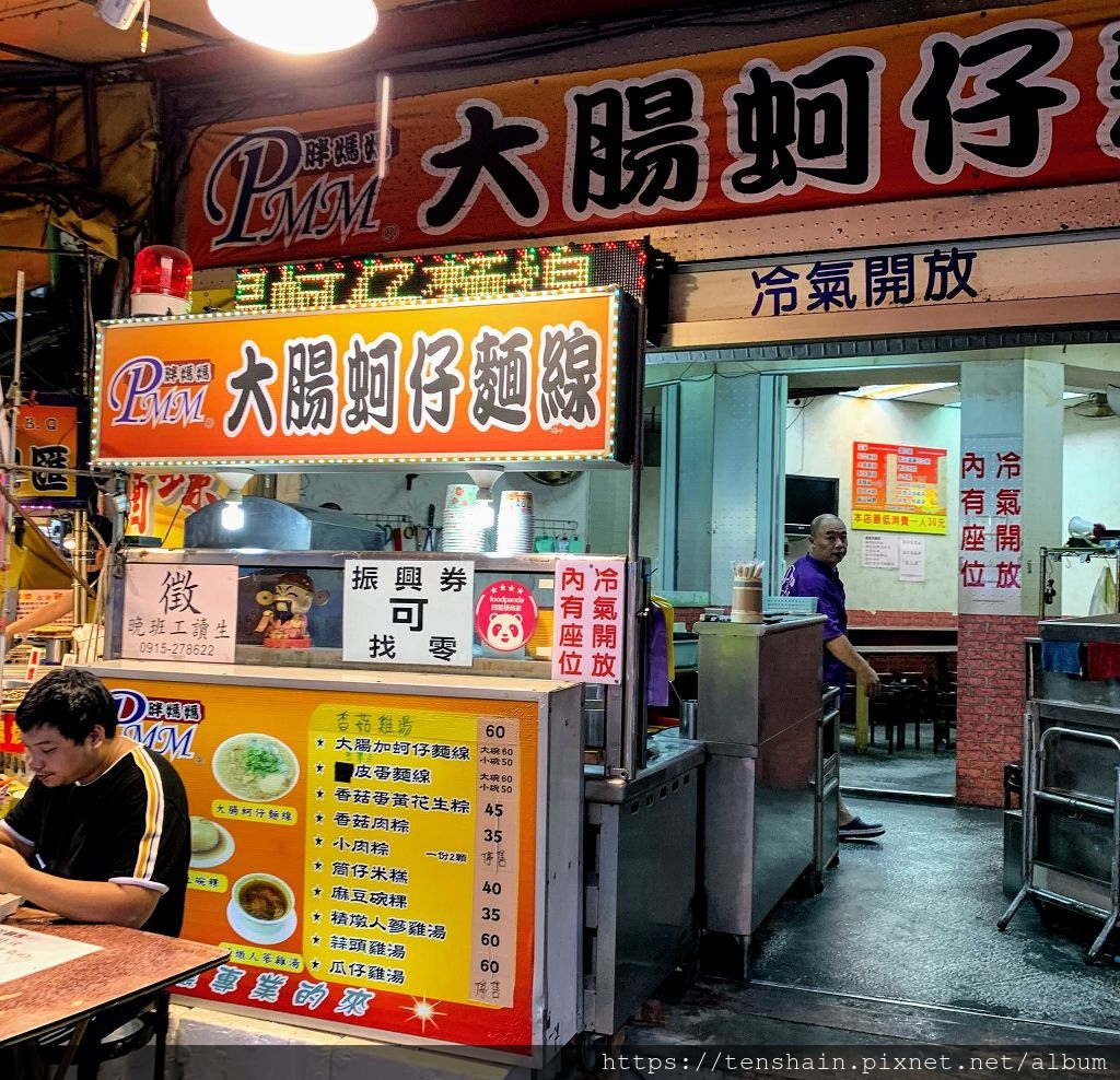 逛著逛著,天色漸晚,肚子也消化得差不多了,又可以到夜市吃一輪了。首先我們看中的是胖媽媽大腸蚵仔麵線,老婆一向是大腸麵線的擁護者,比起台北西門町的阿宗麵線得站在路邊立食,胖媽媽大腸蚵仔麵線不但可以坐著吃,還有冷氣可吹,簡直是太享受了。