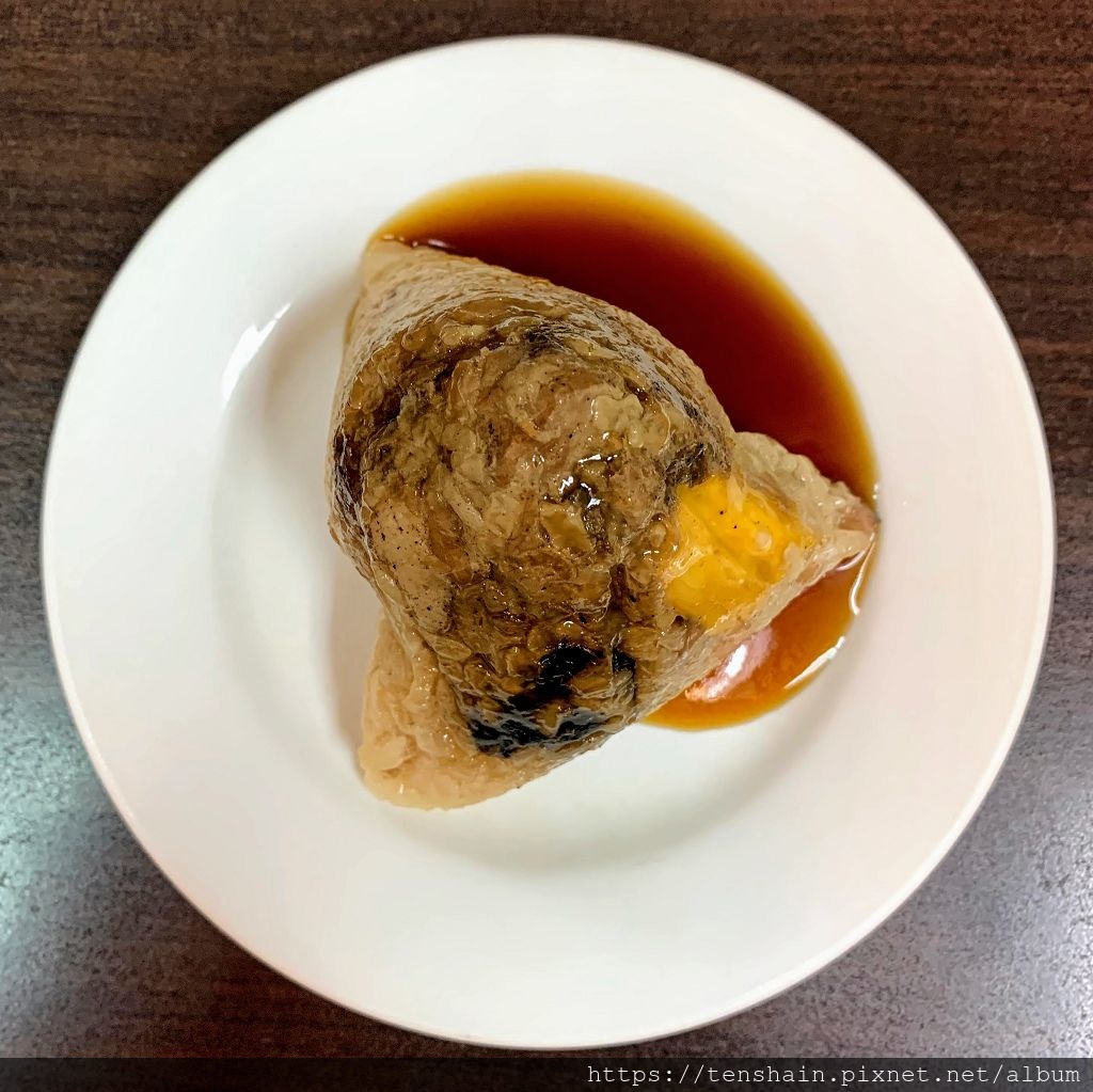 肉粽一顆35元,裡面有香菇、豬肉、蛋黃和油蔥等佐料。米粒煮得很軟,像是南部粽的口感,我喜歡。沾點醬油膏滋味更好,這兩樣吃下來,只要85元,就讓我們兩人至少有了五分飽,真是超值。