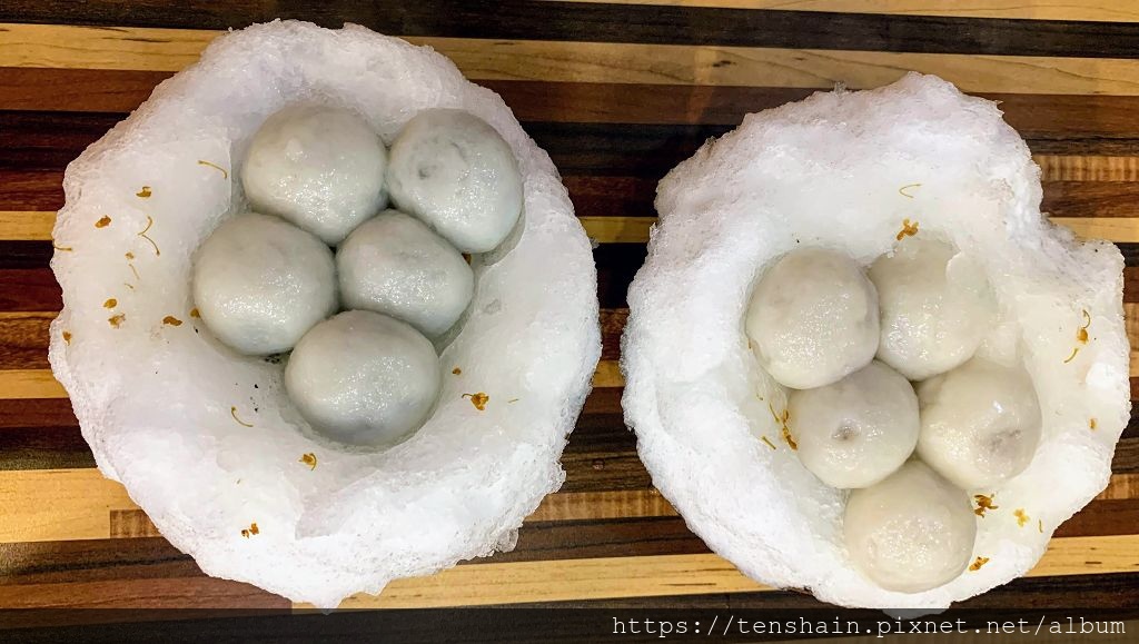 我們當然是點最經典的桂花芝麻湯圓和桂花花生湯圓,桂花是指淋在冰火湯圓上的桂花蜜,每次看御品元冰火湯圓,我都覺得這畫面像極了下了蛋的鳥巢,很有趣。