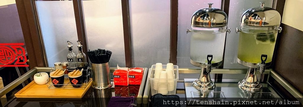 拌麵堂除了冷氣甚涼,也提供無糖綠茶和檸檬水無限暢飲。另有剁椒、辣椒油等佐料,給無辣不歡的重口味人士享用。