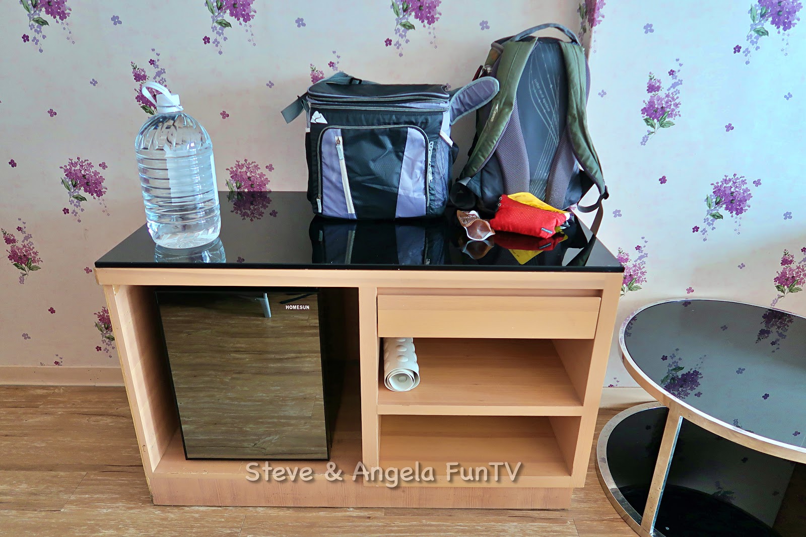 我們家的癖好是出去玩東西不喜歡放在地上,台中香榭驪舍大飯店/ 台中豐禾行旅的房間內有很多平台可以讓我們放東西,這對我們家很加分!