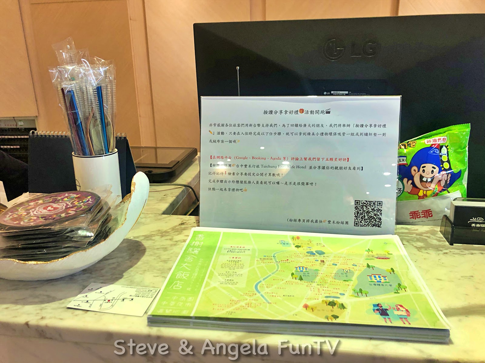台中香榭驪舍大飯店/ 台中豐禾行旅有製作可愛的文青地圖,介紹附近的景點,雖然現在google map很發達,但是有時候可以藉由當地人的視角,看看附近哪裡有好吃、好玩的地方。目前有特別的打卡活動,只要用其中一個指定的社交帳號打卡,就可以獲得雙面針織杯墊或是環保吸管組喔!