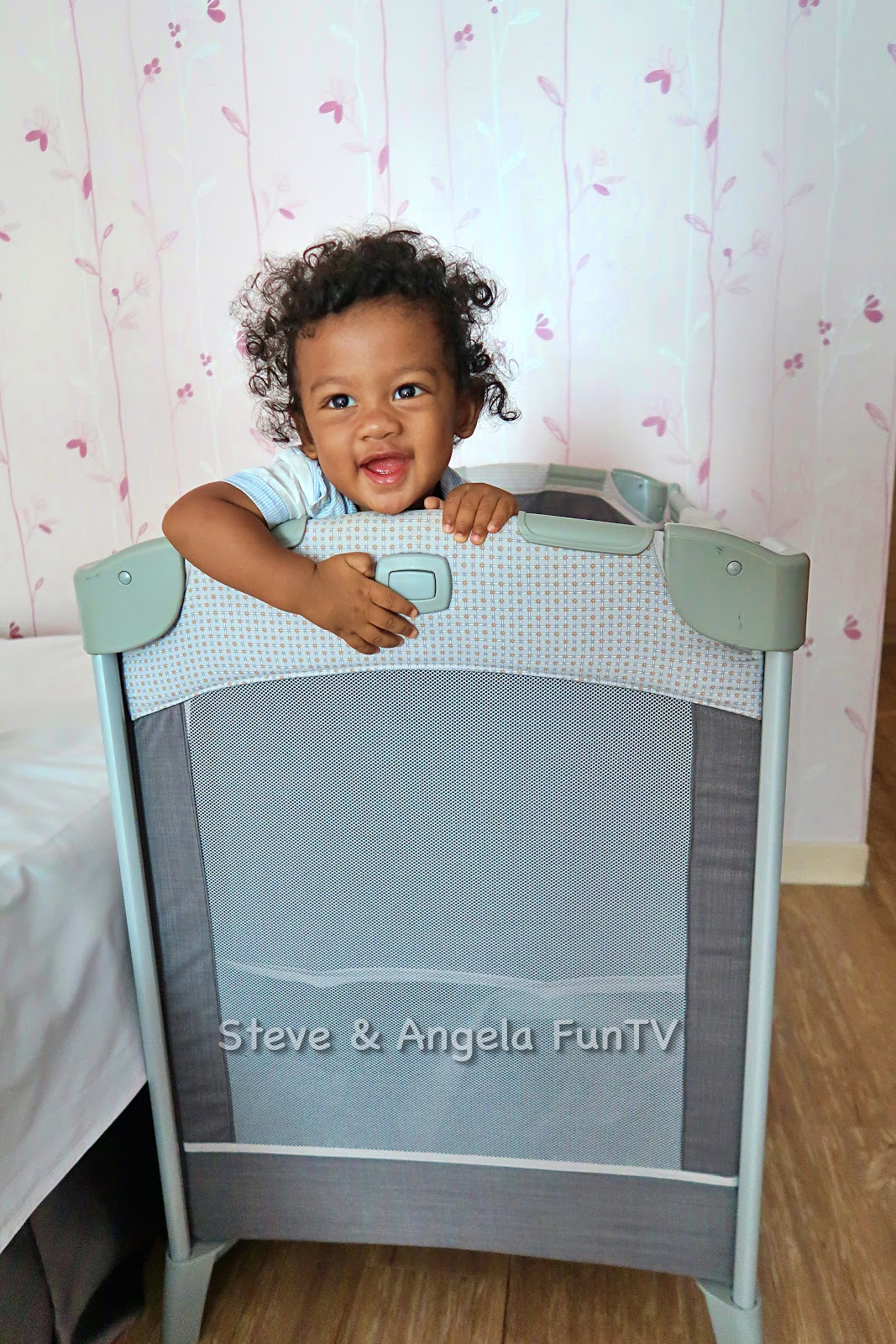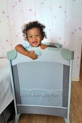 超喜歡新鮮事物的Nyle一看到自己的床馬上就想要進去,台中香榭驪舍大飯店/ 台中豐禾行旅準備的嬰兒床是可以控制床的高低的,一種高度如上圖,一種是可以全部放到最低的,晚上睡覺不怕小孩爬出來發生意外,床也有特別鋪上一層床單,超級貼心的服務!