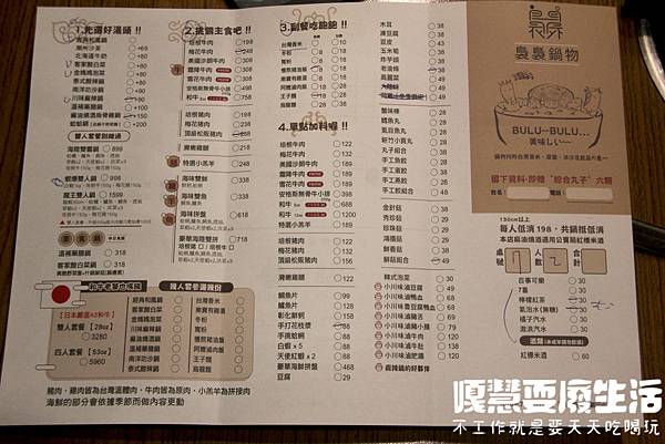 這是我們今天的菜單,裊裊鍋物,先挑選湯頭、二挑選主食、三挑選副餐,最後可以額外單點。