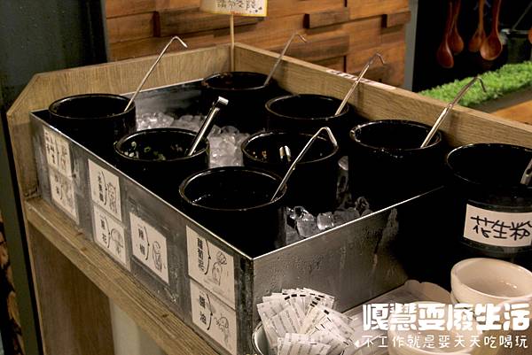 醬料是採用自助式,可以依照自己的喜好調配,這裡有很好吃的水果醋可以搭配。