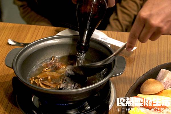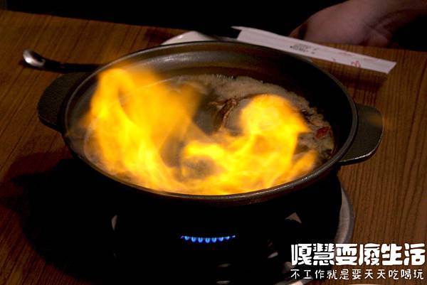 煮沸後服務人員會幫大家點火,把酒氣燒光,讓整體湯頭更香甜。