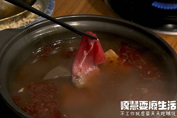 下鍋後涮8-10秒,紛紅色的鮮嫩牛肉超好吃。