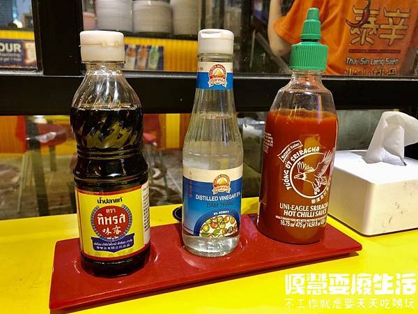 桌上擺著泰國常見的醬料,超有泰式風格。