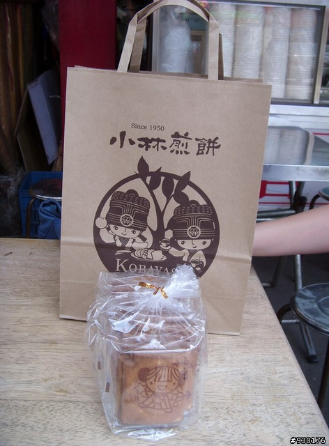 拜拜完之後我們走到名產街去逛了一下,因為芋頭酥和奶油酥餅太常吃了,換換口味吃一下道地的小林煎餅「瓦片燒」。(店門口的那台Focus還真是好「背景」……囧)