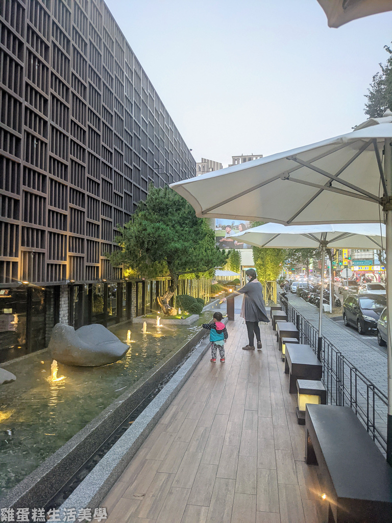 ▲餐廳旁邊有造景水池和小噴泉(女兒深深的被吸引),走廊上皆有長凳供等待的客人休息,後方整排的竹子造景也非常好拍。