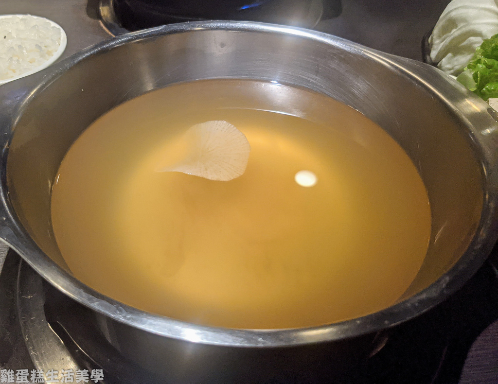 ▲和風湯底有一片醃蘿蔔,湯是完全清澈見底的。