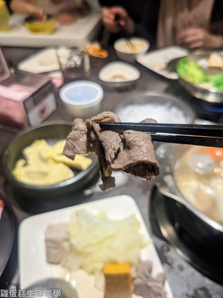 雞蛋糕短評:火鍋湯頭不錯肉質也很好,牛肉油花分布很漂亮,店內裝潢氣派莊嚴,用餐時間建議預約。