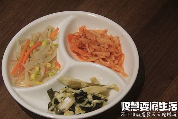 老闆很貼心,每一桌都會有韓式小菜,豆芽菜、醃蘿蔔、高麗菜海帶芽,都是韓式料理常見的小菜。風味微鹹非常下飯。