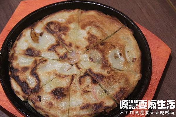 海鮮煎餅 120元 外酥內嫩的海鮮煎餅,是到韓式料理店必點的菜色,搭配韓式醬料忍不住讓人一口接一口,料多實在,有超多蝦仁在裡面。