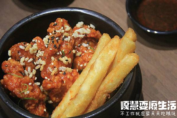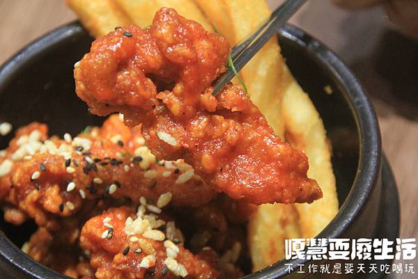 在燈光照色下可以看到乾爽的醬汁附著在炸雞上,常吃韓式炸雞的都知道,醬汁比例與手法在這裡能吃到最道地的韓式炸雞。