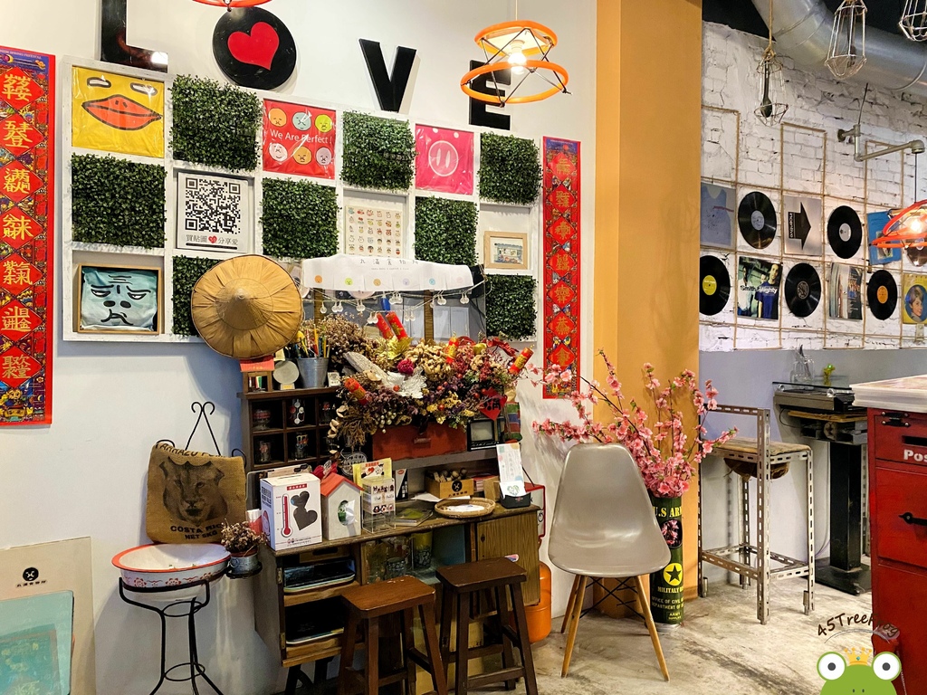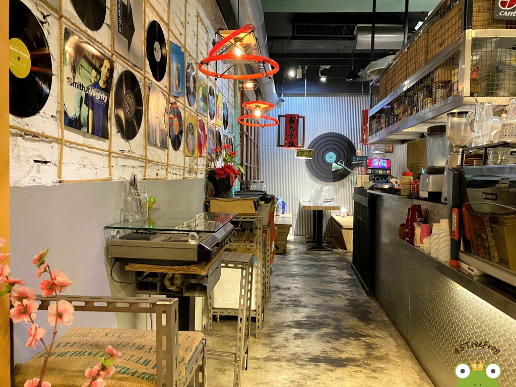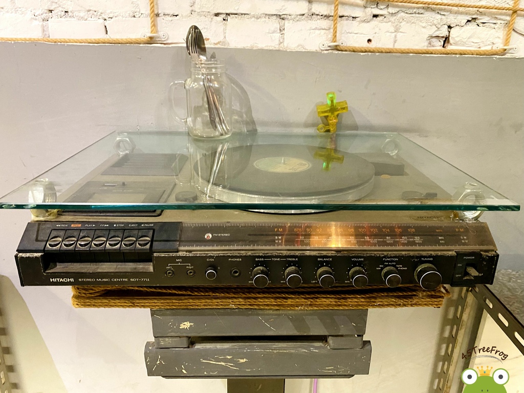 ▾ 一樓有許多黑膠唱片當作造景擺設,甚至連桌子都直接用卡帶唱片機,完全時代的改變啊!