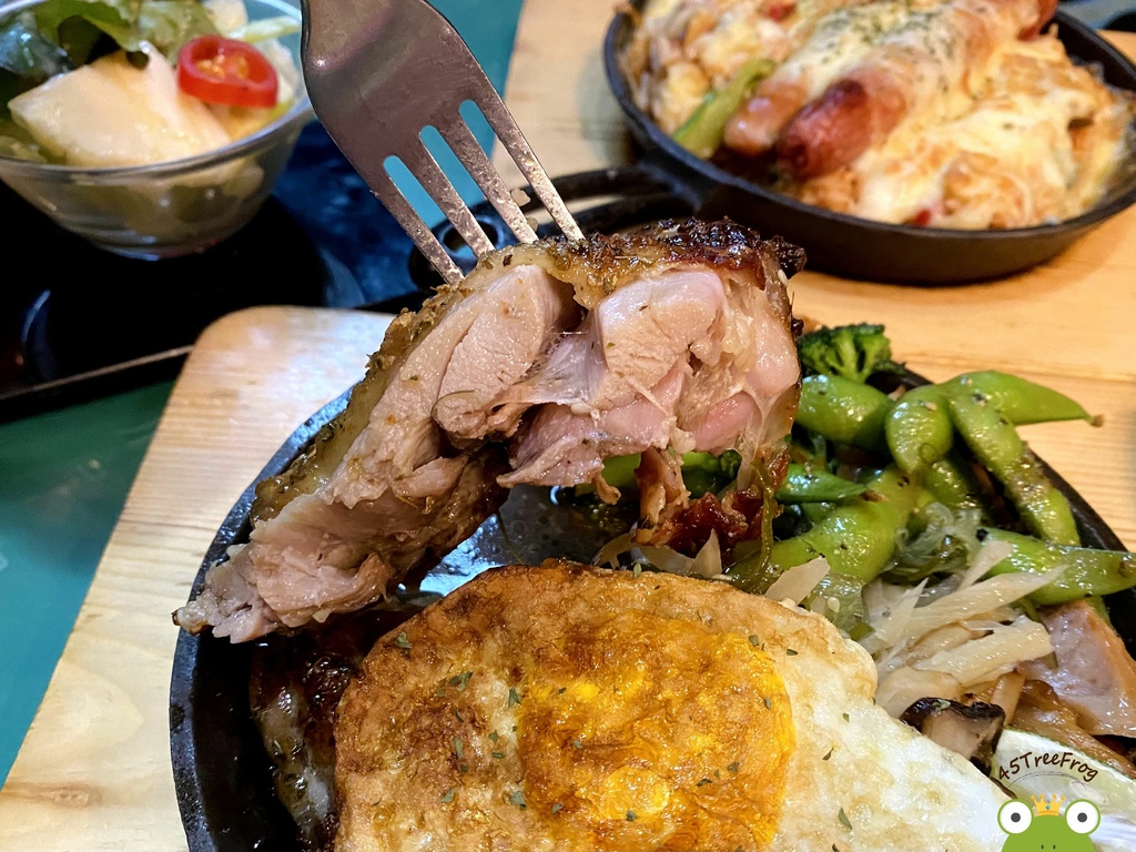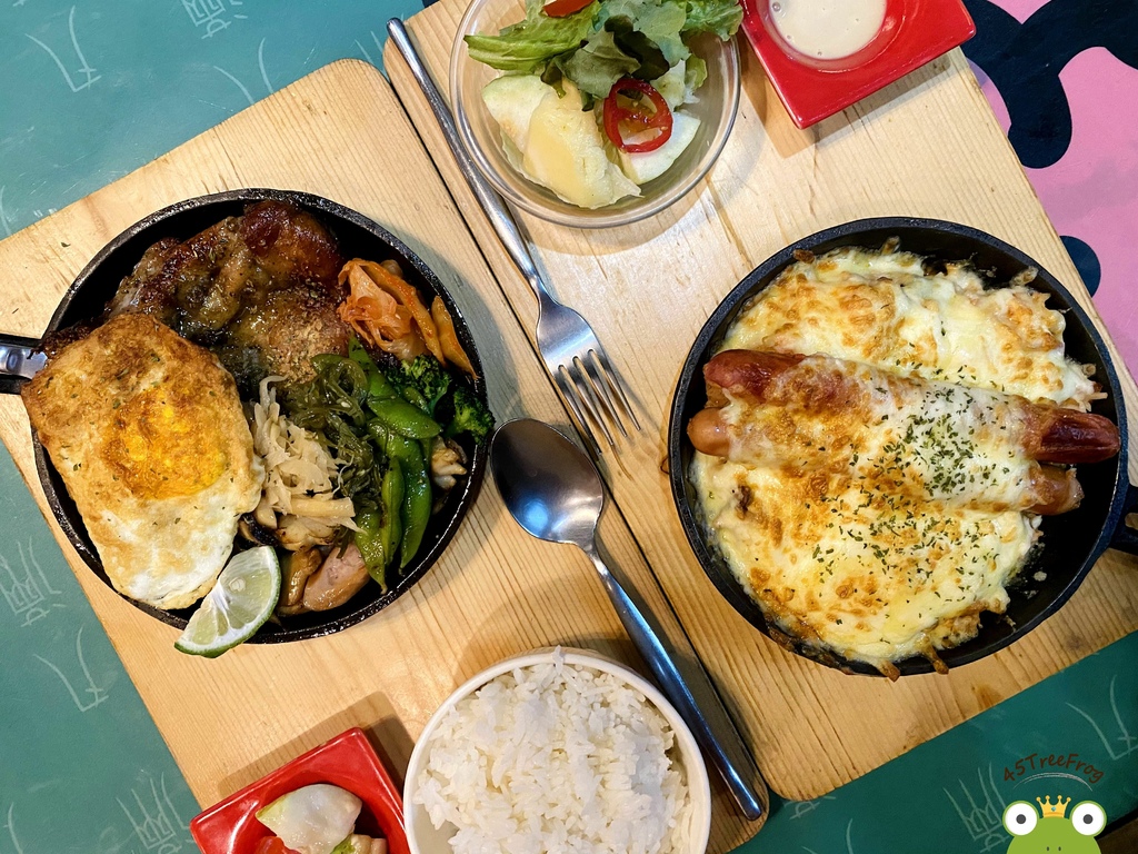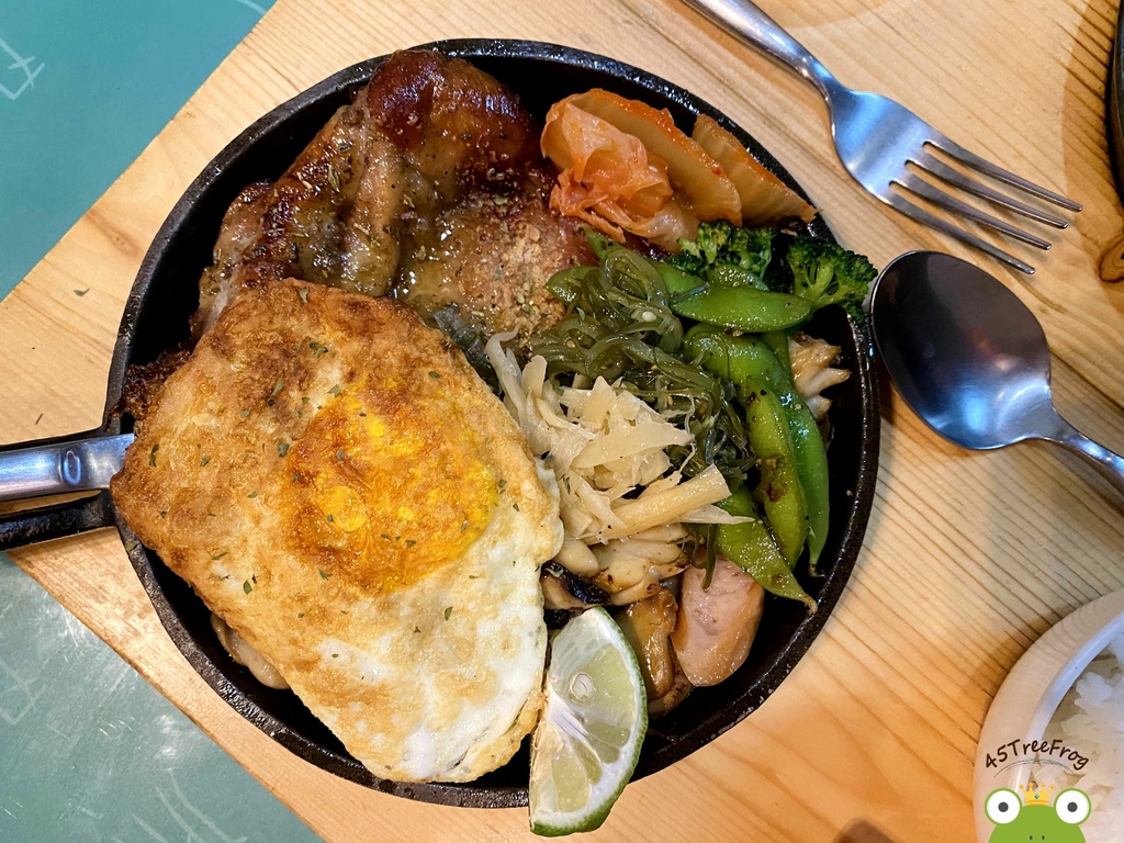 米食簡餐中許多人推薦的品項,雞腿排烤得恰恰好,肉質不柴鮮嫩,而配料超多且加飯免費,一旁還有附一小盤沙拉,整道吃起來超有滿足感。