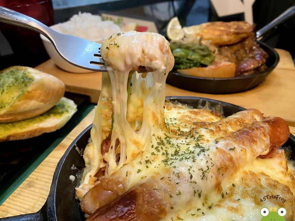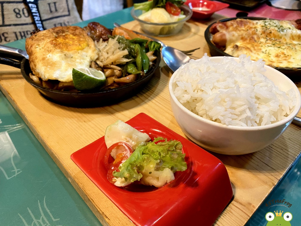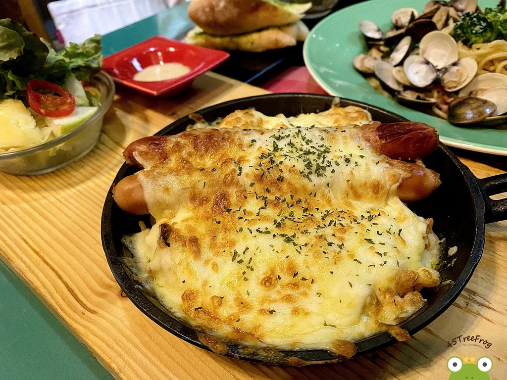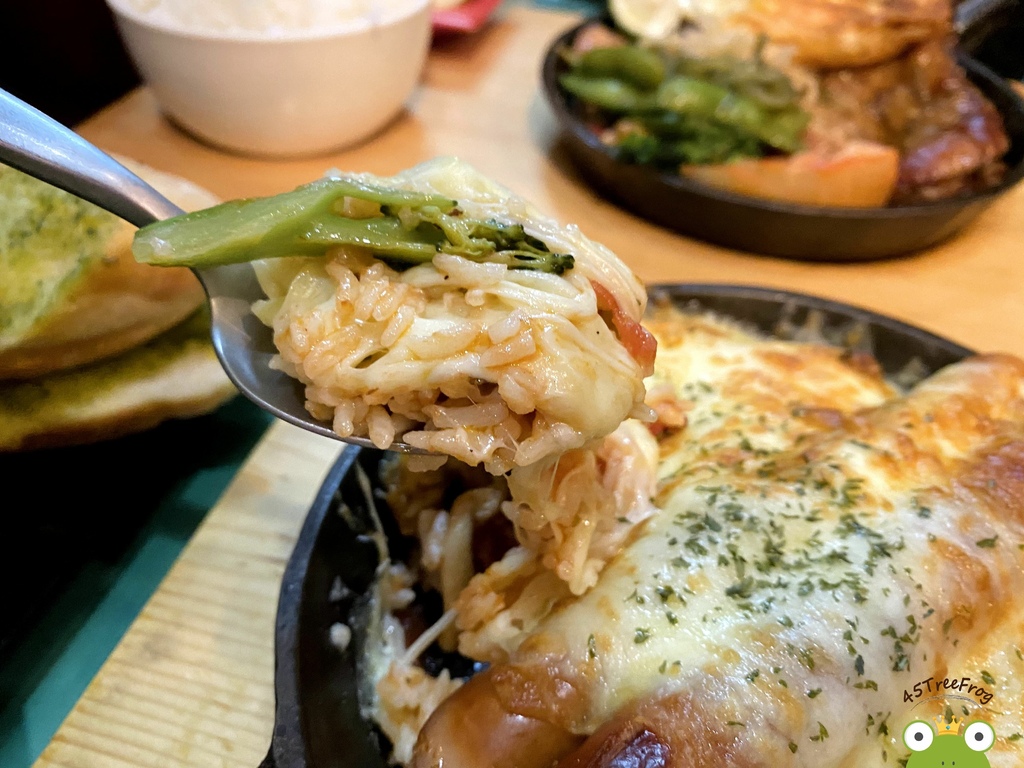 起司控必點焗烤系列,即便放了一陣子後仍然很牽絲。而這道是茄汁飯為基底,加一些時蔬以及德國香腸。茄汁的甜、起司的鹹甜、香腸的厚重味道以及沙拉的清爽感剛好互補,讓整體不會太死鹹又油膩。