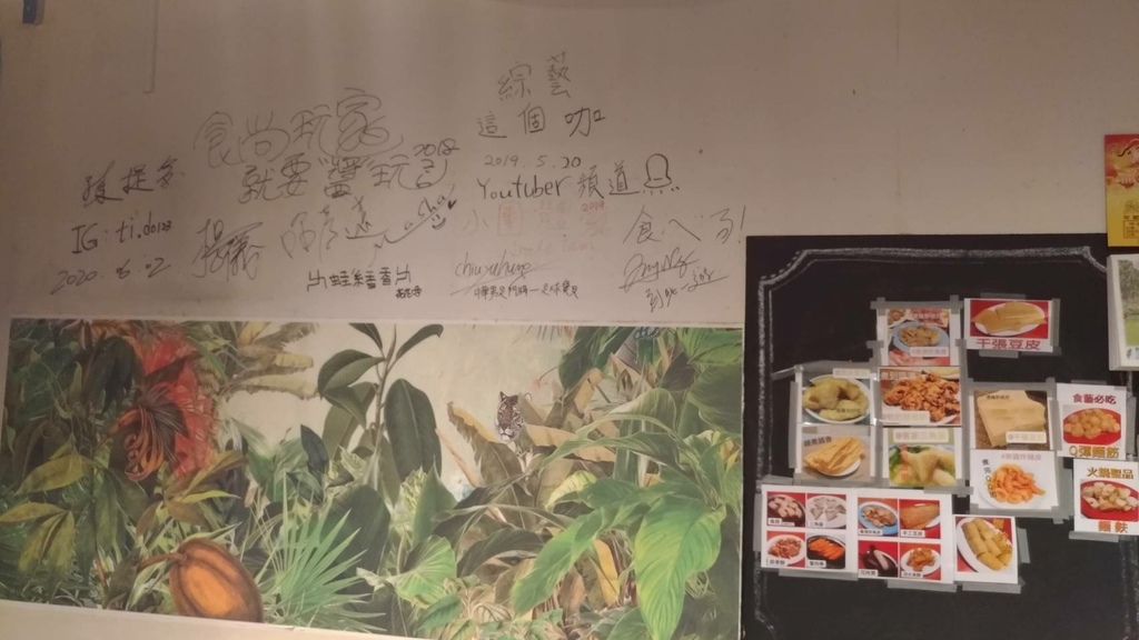 就連各大網紅與食尚玩家等各大綜藝節目都有蒞臨採訪,牆上貼了很多照片就是必點的火鍋料首選,像是Q彈麵筋、千張豆皮、鯊魚皮、響鈴卷等,開鍋費只要30元超便宜,其他消費都是採單點自取式消費,等於是饕客想要吃什麼火鍋料都可以盡情享受一番,店內有很多網紅與綜藝節目的簽名留念!