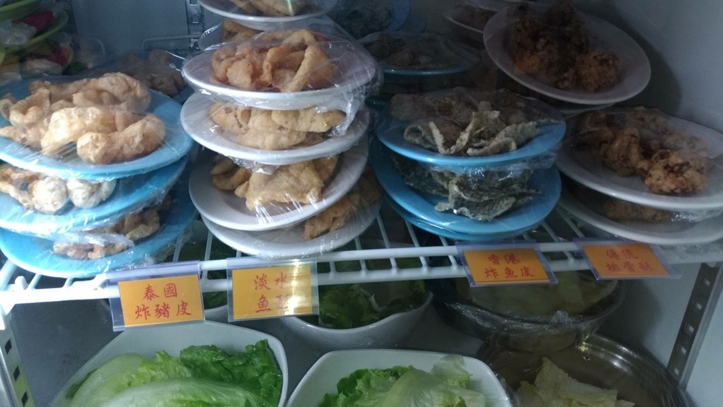 有貼黃標籤的菜名像是泰國炸豬皮、淡水魚酥、香港炸魚皮及傳統排骨酥更是石頭火鍋的好朋友,讓饕客垂涎三尺!