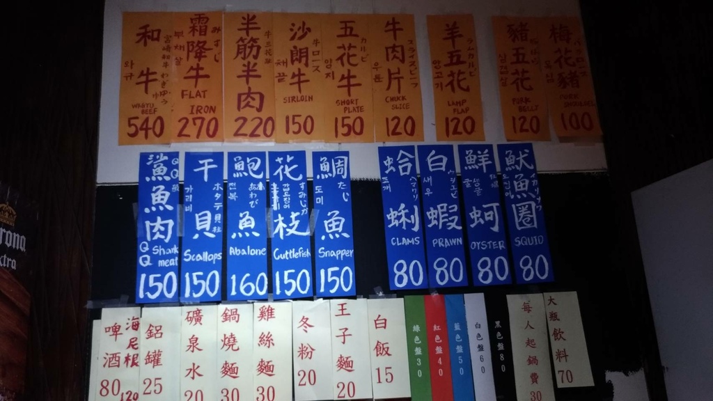 每人起鍋費30元,其他價目表都寫得滿清楚,如果要點海鮮及肉類要跟服務員點菜,其他都可以到冰箱自行取用!