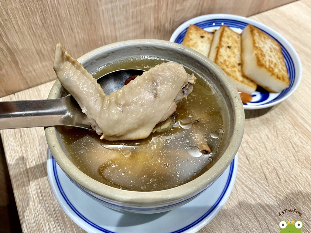 果然是招牌燉湯,用料實在、價格合理。湯品燉的非常入味且不油膩,很清爽甘甜,而雞腿與雞翅的肉質部分超嫩,一下子就能骨肉分離,直接吃能吃出燉湯的鮮甜味,如果味道不夠還可以額外加調味料。