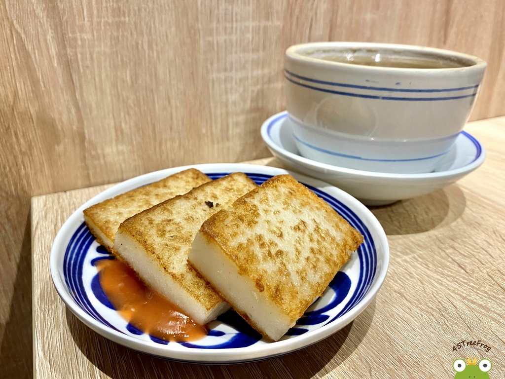 湯品只要加價18元即可享有蘿蔔糕,這根本超划算~一次會有三塊,外皮煎得恰恰好,糕體部分綿密,沾取一旁的蒜蓉醬與甜辣醬超對味。