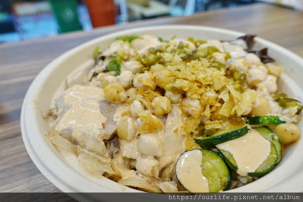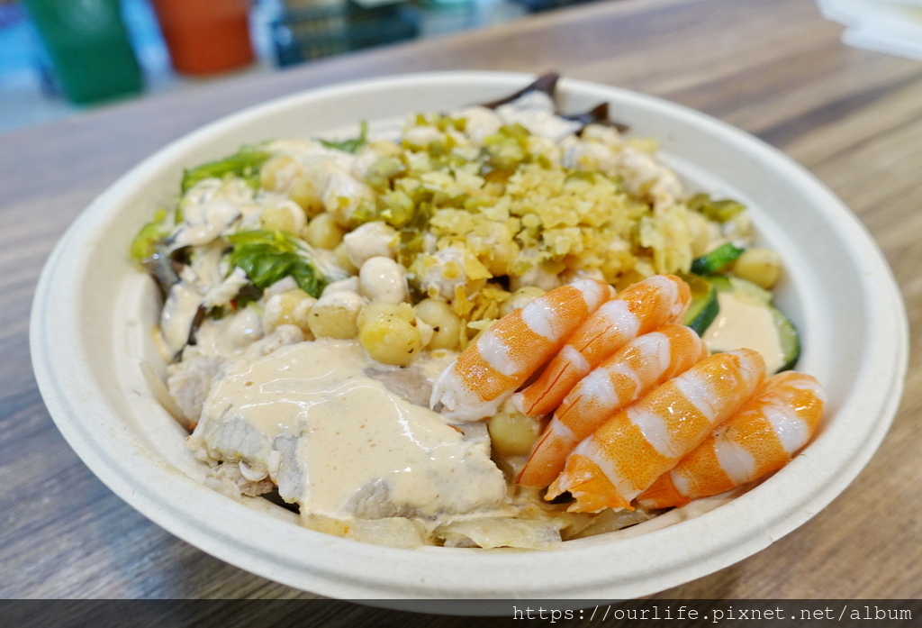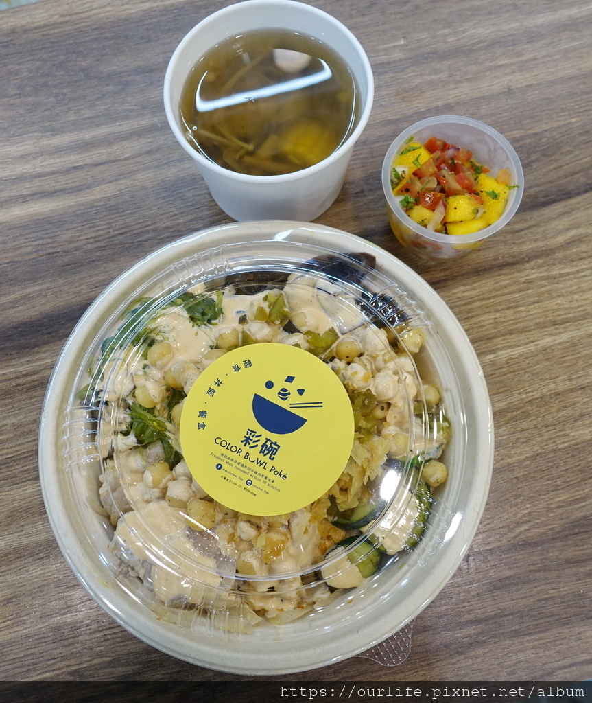 現在很流行夏威夷生魚蓋飯(美國Poke食盒)...彩碗 ColorBowl Poke在台中賣Poke裡份量最多的一家店...一般份量比其它Poke專賣店大份的份量還要多...而且配料跟一般Poke店不同...加上超過700克重的食盒...不滿意都不行...我只吃三分之二就沒辦法再拼了...彩碗的配料很有我的緣...有櫛瓜鷹嘴豆新鮮剝殻白蝦...我就是沖著櫛瓜鮮蝦鷹嘴豆殺到SOGO商圈...