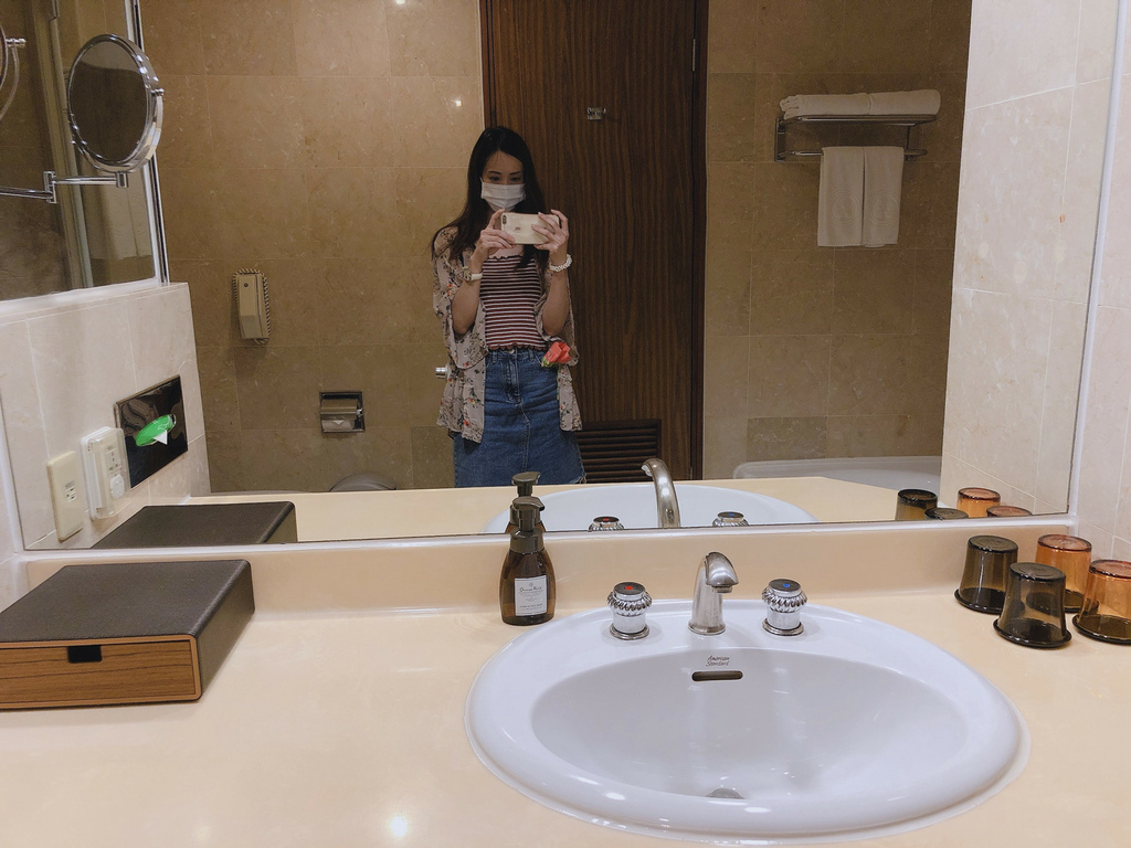 接著來看看衛浴空間吧!這衛浴的坪數也很大呢~ 備品都放在左邊的小抽屜裡,有牙刷/牙膏、浴帽、梳子、刮鬍刀、棉花棒/牙線棒。