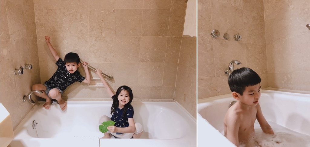浴缸本身也很大唷,我還特別自備泡泡浴露讓兩隻泡澡:) 為了泡澡,兩隻都不想出門欸~
