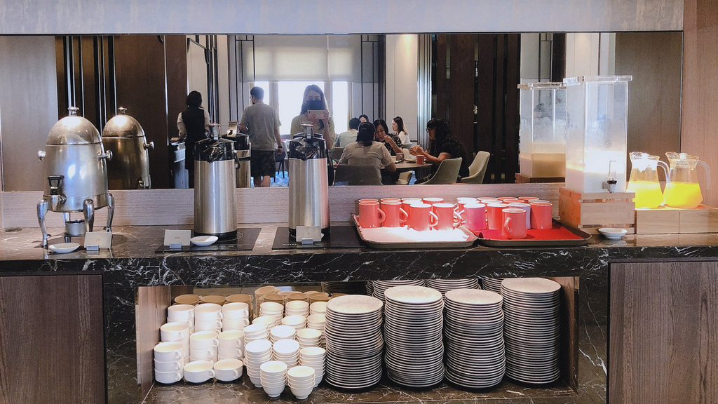 早餐時段有分流,座位也隔蠻遠的,所以我們是選擇在餐廳用餐。我們人數是兩大兩小,被安排到大圓桌,半開放式的包廂座位:)