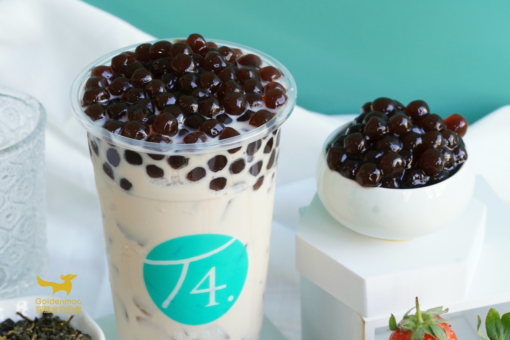 T4清茶達人的珍珠悶煮的功夫也是傳承自老師傅的手藝,在水量跟火侯的掌握也是非常講究的,小金喜歡珍珠勝過波霸,個兒頭雖然沒波霸來的大但是那飽滿Q彈的口感真的還是略勝了一籌啊!T4清茶達人的珍珠也有大、小兩種Size可以選擇,當然想要一次都吃到也可以混珠搭配喲~