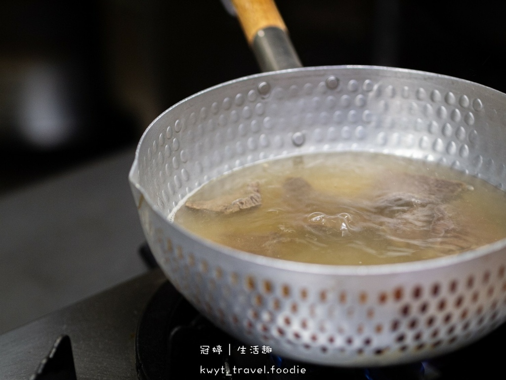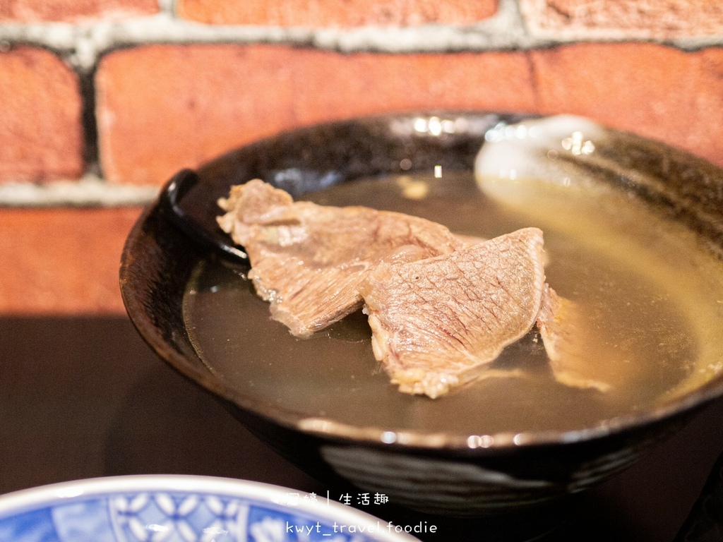 確認餐點後才開始煮製的現煮藥膳牛肉湯,第一口先喝湯,可以嚐到蘊藏於湯裡的溫和藥膳香氣,再吃一口牛肉,軟嫩、不乾柴,且吸取藥膳湯精華的牛肉,很~讚。