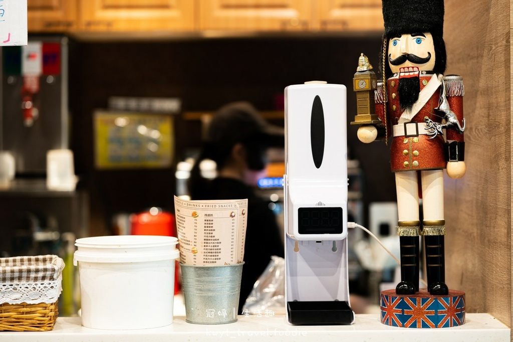 走進小木屋鬆餅興大店,先在這裡清潔雙手與量測體溫。