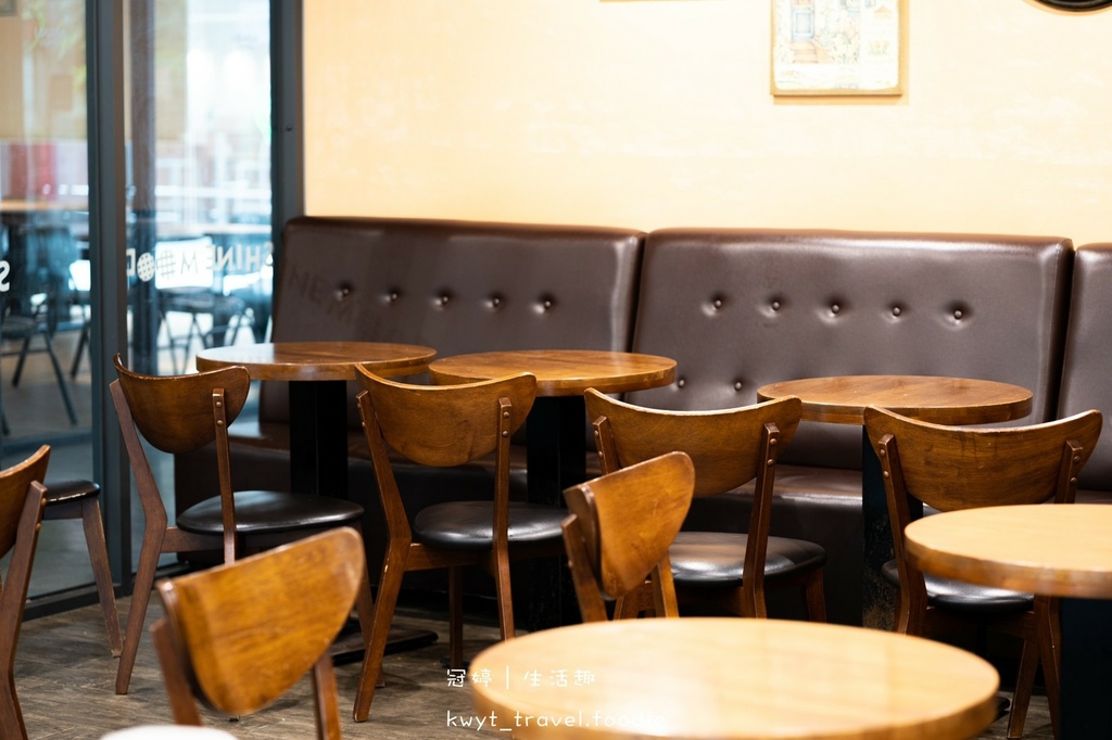在格局方正、精緻小巧的空間裡,擺放著自帶溫度感的木製桌子、提供舒適坐感附帶軟式坐墊的木椅。