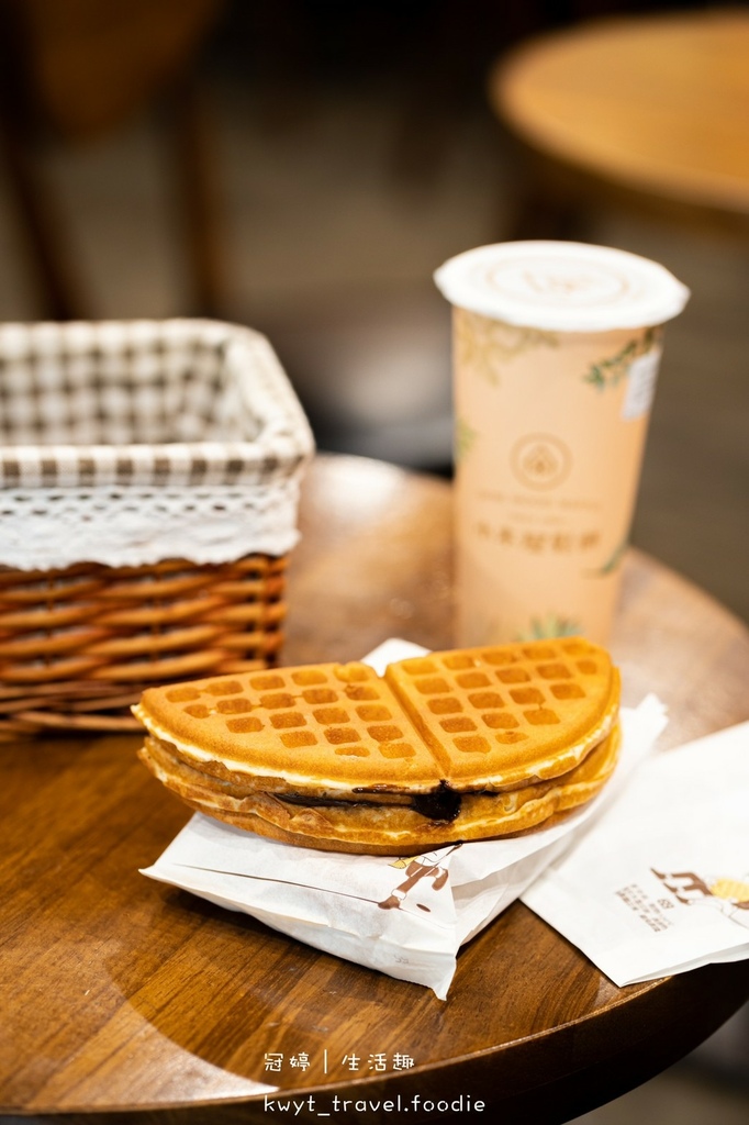 最喜歡的就是這種外層烤得酥香,內裡保有麵勁,Q彈又紮實的現烤鬆餅!搭配塗好塗滿甜度嘟嘟好的巧克力醬一起享用,很可以!