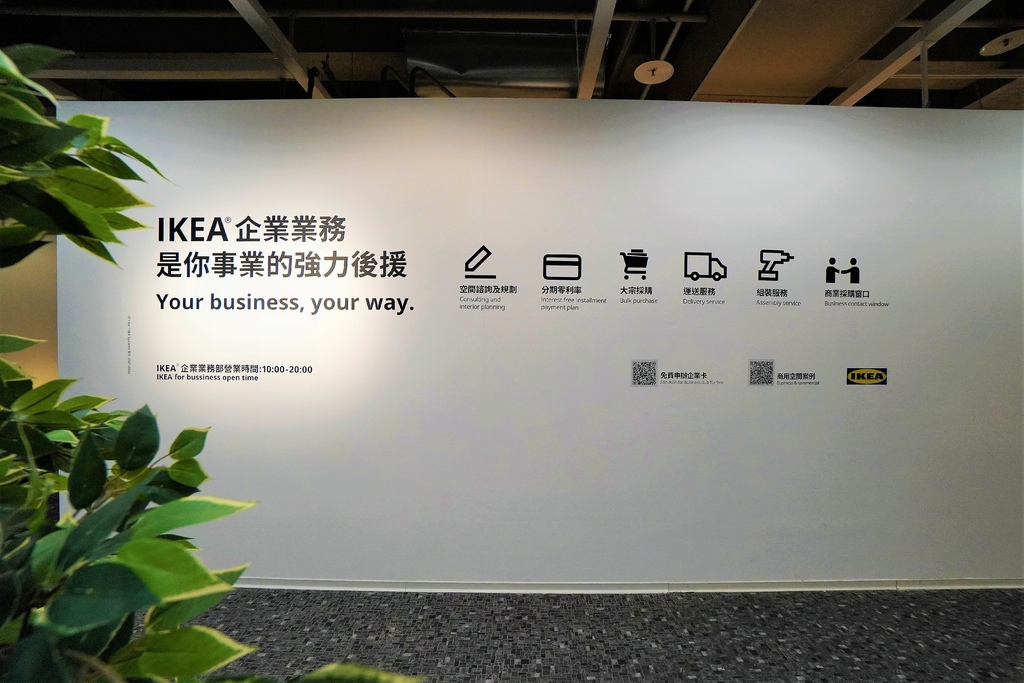 IKEA台中店一樓還有一個企業業務服務中心,想要創業的你這裡可以提供空間咨詢及規劃、大宗採購、組裝服務、運送服務、商業採購窗品…等服務,IKEA真的越來越多元越來越完整了。