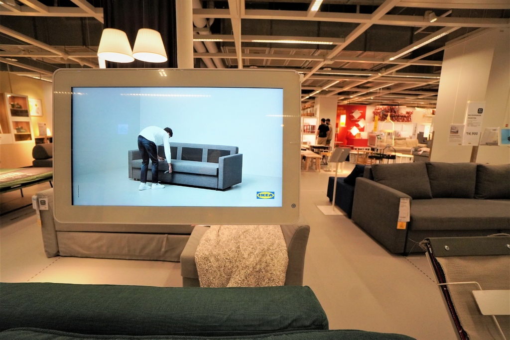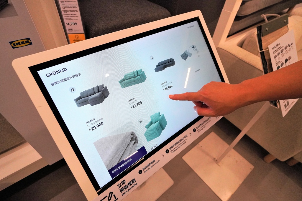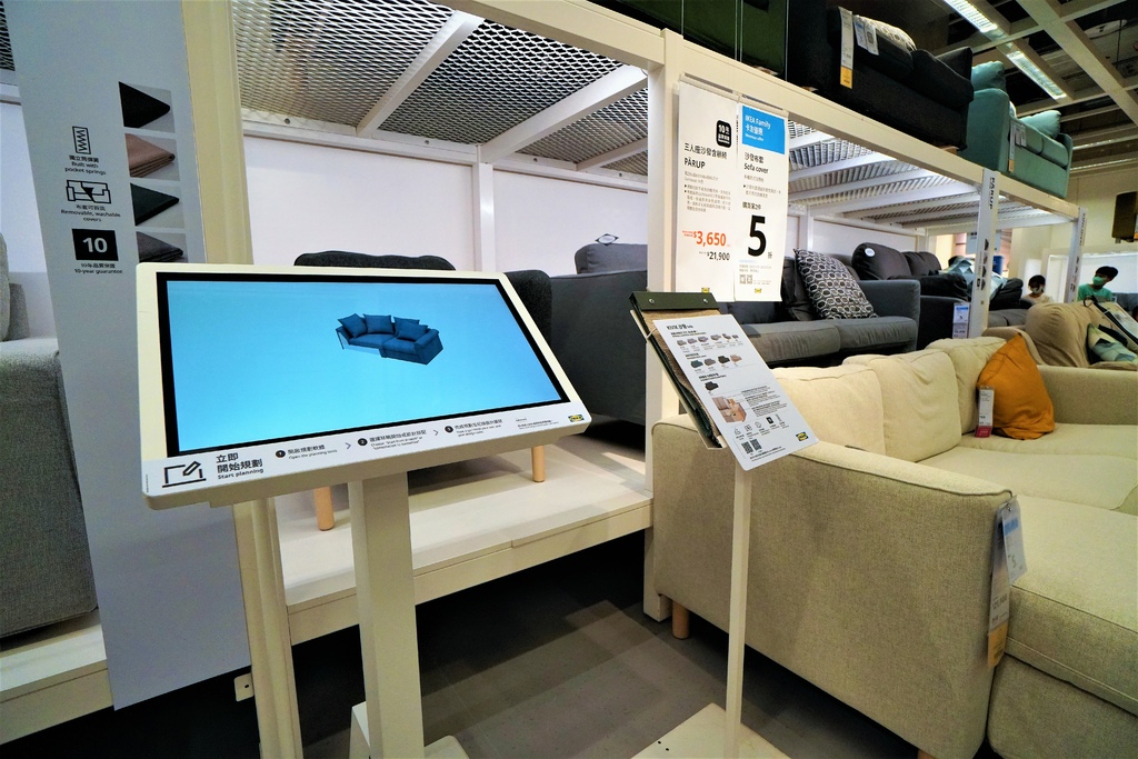 IKEA台中店這次在整體數位化服務的部份增加了不少,像是小金在客廳區選擇沙發電視櫃時就可以發現這樣的影片展示,可以清楚的知道這組商品的功能有哪些、該如何操作使用真的超方便的。