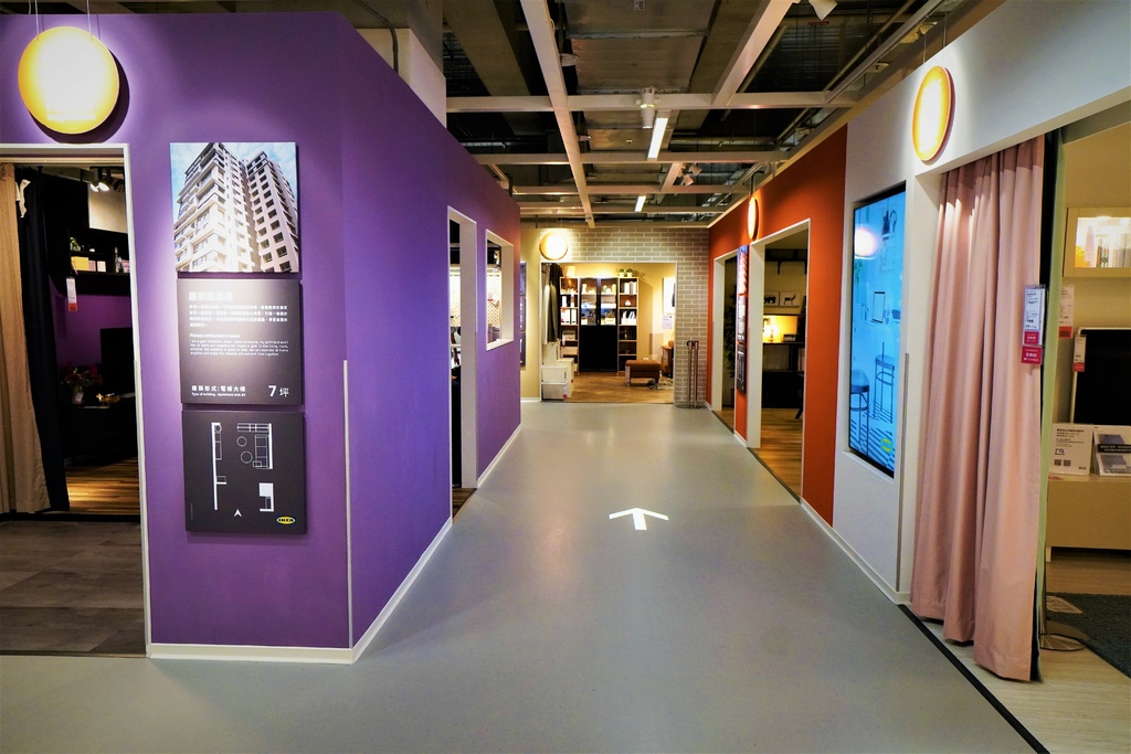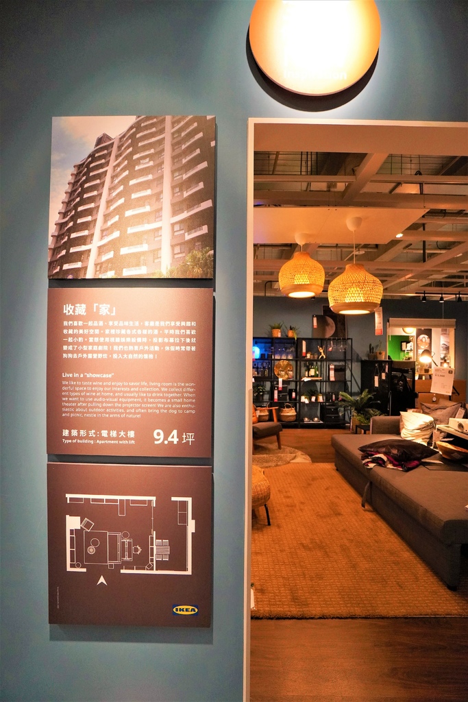 IKEA展間用了很多實際的建案空間來展示,而且清楚的標示出了坪數大小、格局…等資訊,讓大家可以直接依照自己的空間大小、格局來找到跟自己相當的設計,這點是小金一直非常讚賞的,非常的實用。