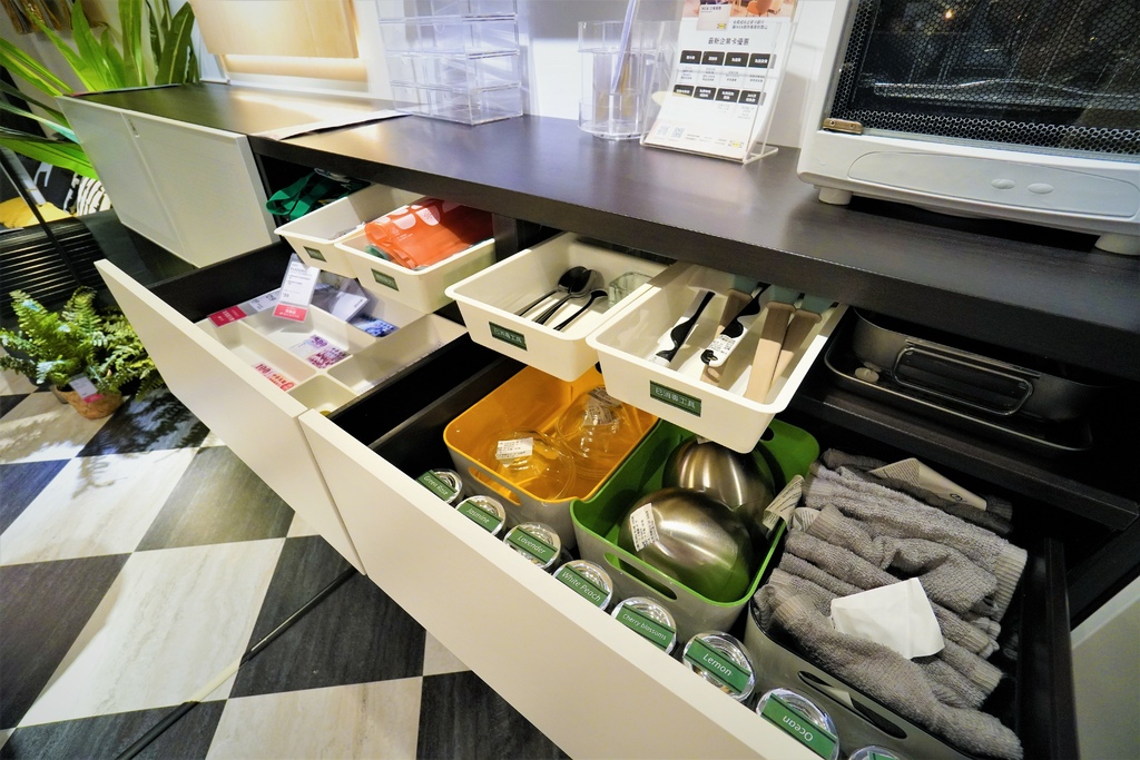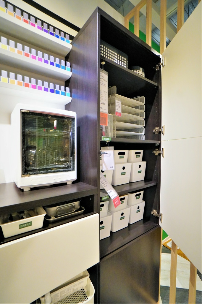 像這樣子裡頭再配上不同大小的收納盒是不是就讓整個收納的效率跟效益提高了不少,小金就是特別喜歡IKEA這服務,幫大家把每樣產品做了一個非常好的使用示範。