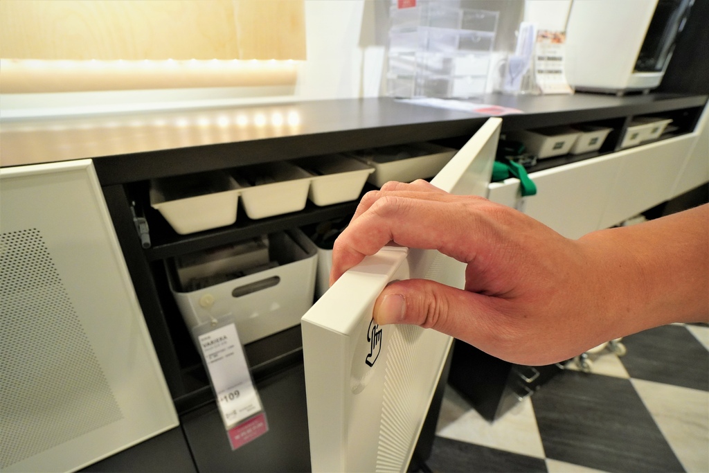 這款BESTA收納組合的門板設計是一按即開的,這種真的很方便,如果手上拿了東西直接壓一下就可以打開,而且也可以少掉門把讓整體視覺看起來更簡潔。