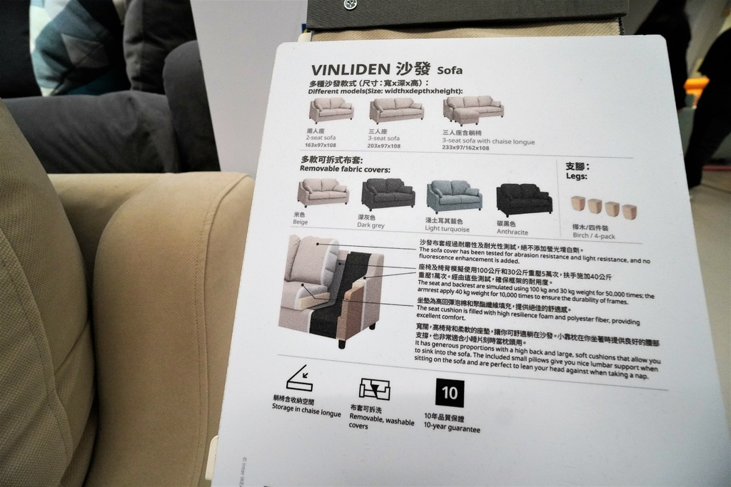 小金剛好接下來要入住新家啦~所以近期也看了不少家俱店,IKEA的沙發旁都可以看到這個詳細的沙發組成、材質…等介紹表,真的非常的貼心,這樣可以自己慢慢挑慢慢逛不會有壓力。