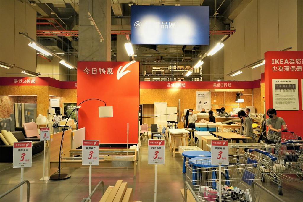 IKEA台中店結帳區前會經過一個區域,這兒總是人潮滿滿~那就是特價商品區啦~這裡有許多出清的陳列品、打折商品可以淘寶一下,走過路過不要錯過。