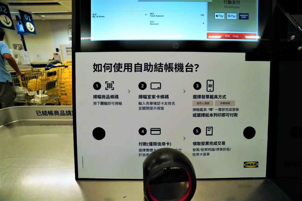 隨著科技的進步IKEA也提供了自助結帳服務,操作真的蠻容易的也可以支援多元支付方式,第一次用別擔心按照上頭的步驟就可以。
