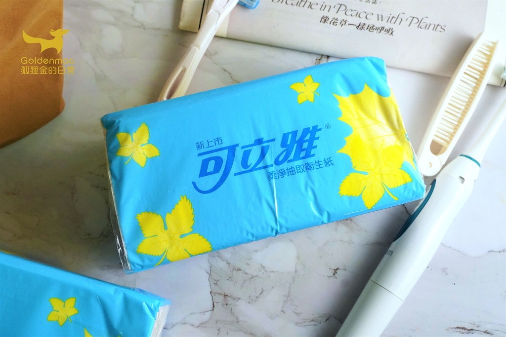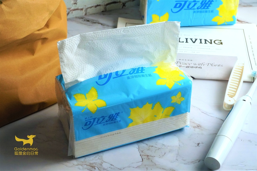 同樣的可立雅抽取式衛生紙也是有壓上花紋,點點的壓紋多了流線感再搭配上花朵的紋路,這也是有增加了一些視覺質感,整體紙質在實際使用比較上確實大姆指抽取式衛生紙的柔順感勝出,當然在價格的優勢上也是大姆指抽取式衛生紙大獲全勝啦