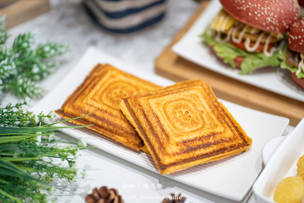 印有蕃茄村品牌LOGO的磚壓吐司也是店內的超人氣早午餐之一。